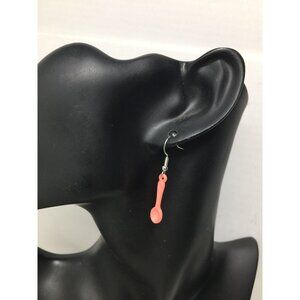 Women's Silver Tone Miniature Pink Spoon Hook Earrings