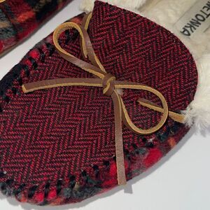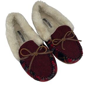 Womens Minnetonka Camp Collar Moc Slipper in Red Autumn Plaid Size 7 Fleece Lined Barely any wear. Very good condition.