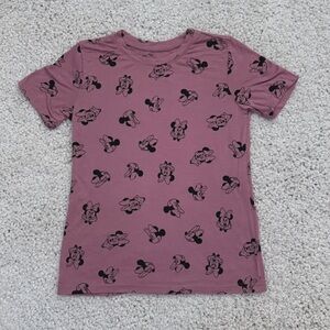 Dusty mauve T-shirt with Minnie Mouse pattern all over front and back. Size Medium women’s.