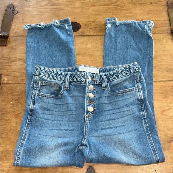 Women's Miss Me Blue Jeans with Button Fly with distressed hem ankles size 25
