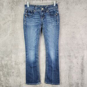 Womens Miss Me Bootcut Jeans Style JP5613B Denim Blue Rhinestones Size 26
