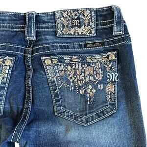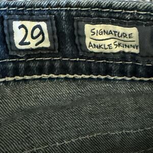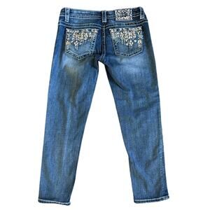 Women’s Miss Me Dark Wash Jeans Signature Ankle Skinny Crop Capri Bling Size 29