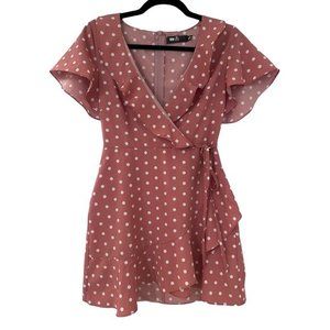Women's Missguided Pink Polka Dot Wrap Dress Size 4