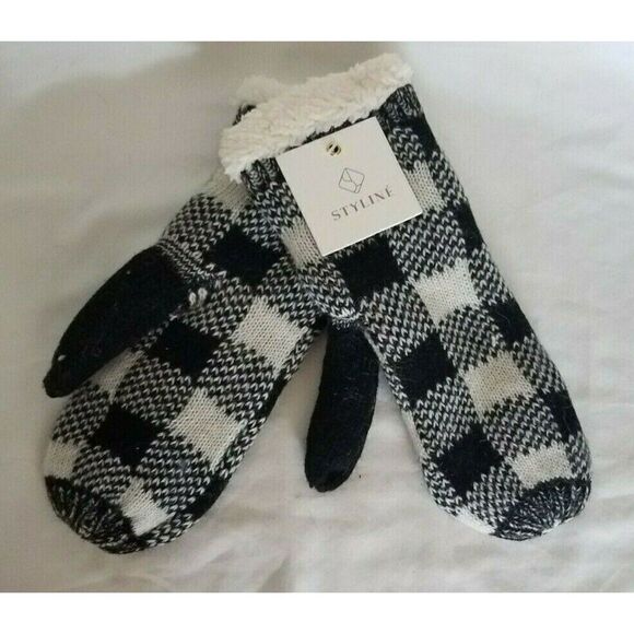 Women's Mittens Sherpa Black Gray & White Buffalo Plaid Winter