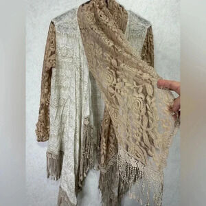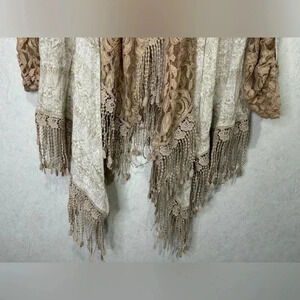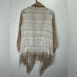 Women’s Mix Media Lace Fringe Open Fringe Cardigan Cover-up Boho Sz Small