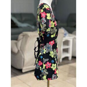 Womens Mixed Match Nurse Scrub Set. Bold Floral Design. Lime green, pink, grey, blue. Shirt and Pants Set. Black Floral. Excellent. Nurses, nursing. Set includes top and pants. Both size small. Pants are long.
