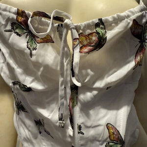 Mixed Threads Butterfly Print Crop Top XL, color White with multicolor butterfly print.
