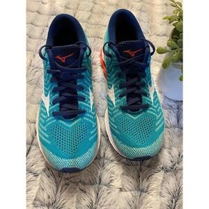 Womens Mizuno Running Shoes 7.5 WaveKnit R2 Teal Navy Orange