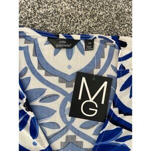Women’s Mlle Gabrielle Blue Floral Midi Dress Plus Size 1X Bubble Sleeves NWT