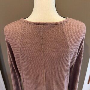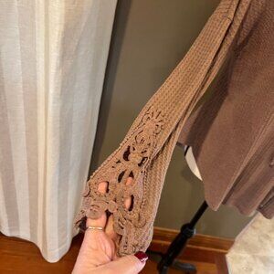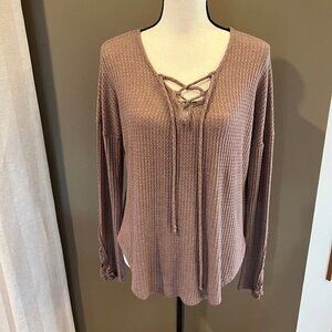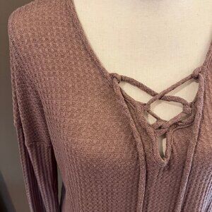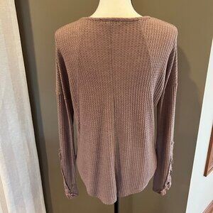 Women's Mocha long sleeve waffle, beautiful detail sleeve, Size Large