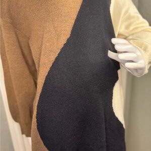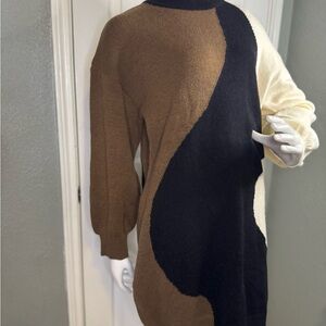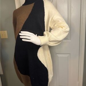 Women's Mock Neck Abstract Colorblock Knit Sweater Dress.