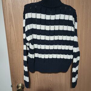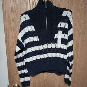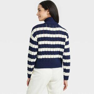 Women's Mock Turtle Neck Quarter Zip Pullover Sweater - A New Day™ Navy/Cream XS