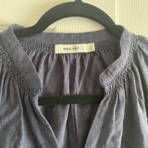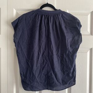 Women's Mod Ref Navy Linen Blend Blouse Small Casual