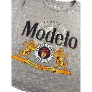 Women’s Modelo Beer Graphic Crop Top T-shirt Gray Short Sleeve Casual Medium