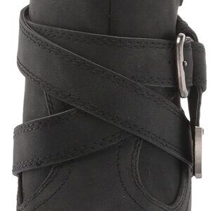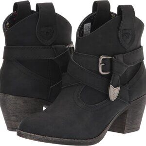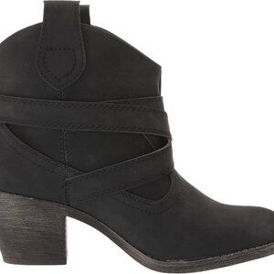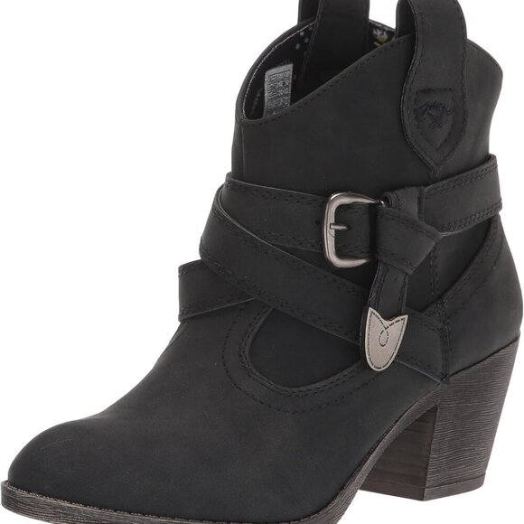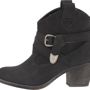 Features: Stylish ankle boots with a chunky 2.5-inch heel, scrunched shaft, and buckle detailing for that perfect cowgirl edge. The synthetic upper feels comfy yet durable, and the rubber sole adds grip for day-to-night wear.