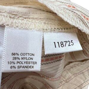 Cute, relaxed fit cropped pants. Cream colored with grey and orange embroidered vertical stripes. Cuffed, wide legs. Great for warmer weather, office wear and casual wear.