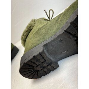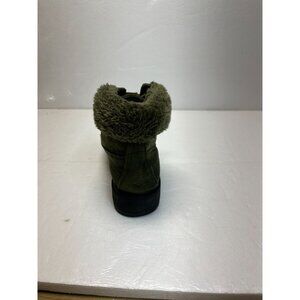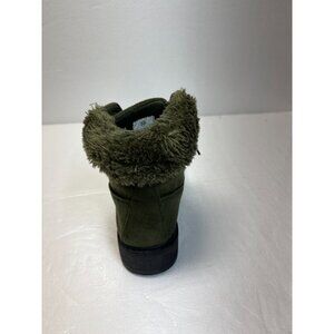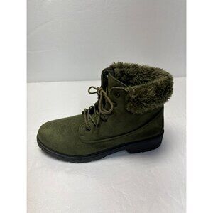 Womens Modern Rebel Olive Faux Suede Ankle Boots With Faux Fur Lining & Lace-Up