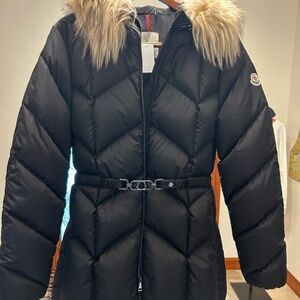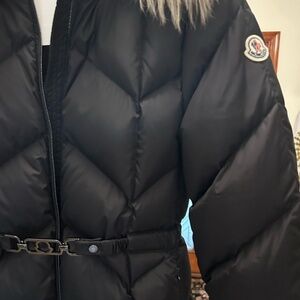 Women’s Moncler Loriat belted puffer coat size 4 with faux fur hood