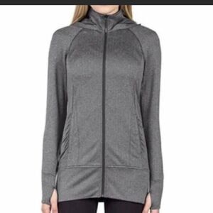 Women's Mondetta Gray Black Herringbone Hooded Zip Up Jacket Size Medium