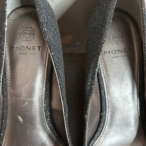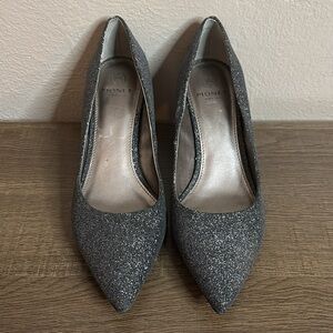 Womens Monet Pewter Glitter High Heel Pumps Jane Point Toe Slip On 8.5M