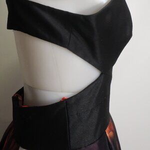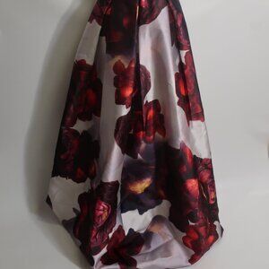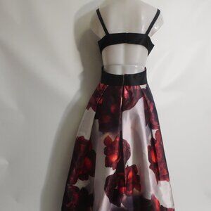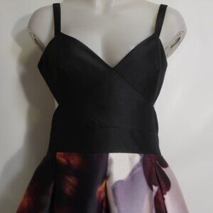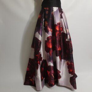 Womens Monique Lhuillier Plum Black Red Strappy V-Neck Floral Maxi Gown Dress 8