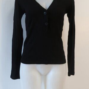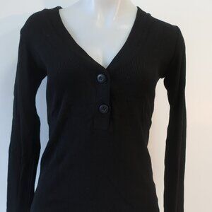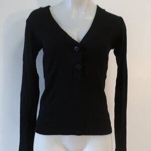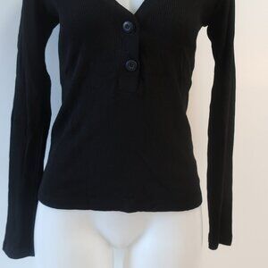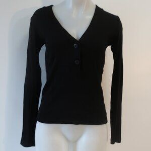 Womens Monrow Black 2-Button V-Neck Ribbed Long Sleeve Top M