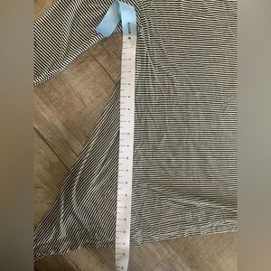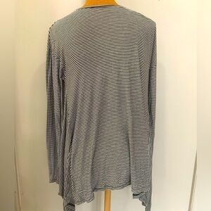 Women's SUPER soft Mossimo black and white stripe long sleeve shirt. As shown in photographs, each side has a little triangle of extra fabric that hangs down longer than the midline bottom hem.