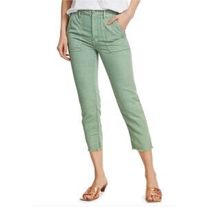 Women's Mother The Shaker High-Rise Chop Crop Linen-Blend Jeans in Hedge Green