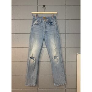 Women's Mother The Tripper Cut Flower Boot Cut Distressed Light Wash Jeans sz 25
