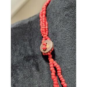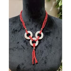 Women's Mother of Pearl Red Triple Layered Seed Beaded Stylish Party Wear Necklace.