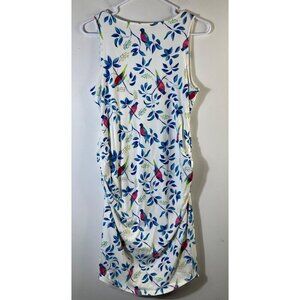 Womens Motherhood Maternity Stretch Dress Ruched Sides Floral Bird M