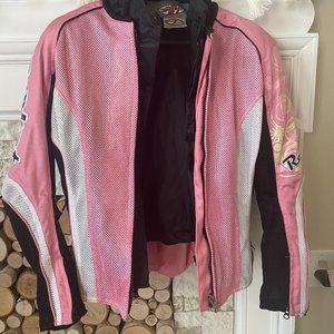 Are you a badass chic looking for some new gear to wear while riding down the road on the back of a bike with your arms wrapped around your favorite guy? Or love the freedom of feeling the wind against you on your own, rolling down the highway? This is the set for you! Matching helmet and jacket for an amazing price! Joe Rocket and HJC Brands! This gear has only been used a couple of times This will sell fast, so grab it while you can and hit the open road!