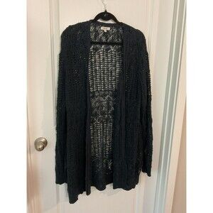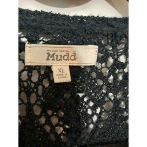 Women's Mudd Black Lace Sweater Cardigan Y2K XL X-Large Crochet Knit Boho (C5)