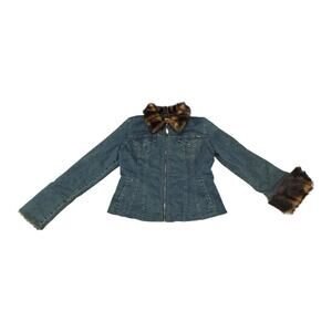 Women’s Mudd Jeans Y2K L Denim Long Sleeve Button Jacket Coat With Faux Fur