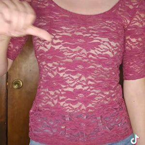 Perfect flattering pink lace top!! perfect for layering!! so y2k and cute !