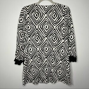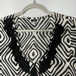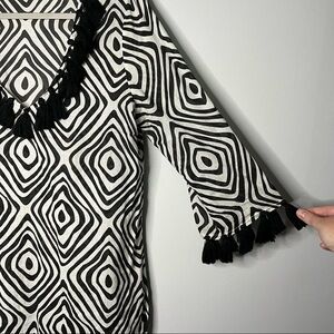 Women’s Mudpie black geometric printed tassel detail tunic blouse size S