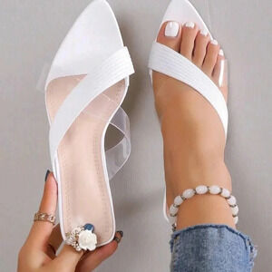 Women's Mule Stiletto Pointed Toe Sandals With Woven Strap