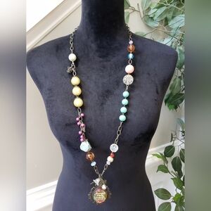 Womens Multi Tone Multiple Beaded Crystal Pendant Boho Chain Necklace Jewelry.