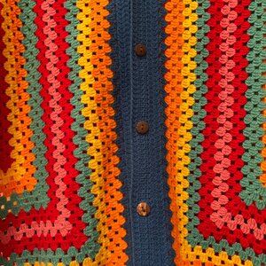 Women's Multi colored hand knit shortsleeved collared Cardigan