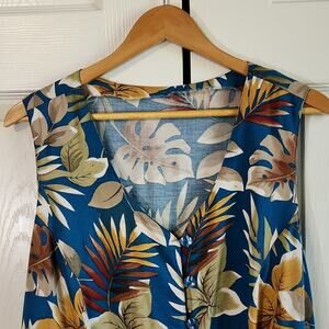 Womens Multi-Colored Tropical Dress Size Med Button Front Vacation Resort