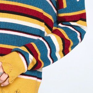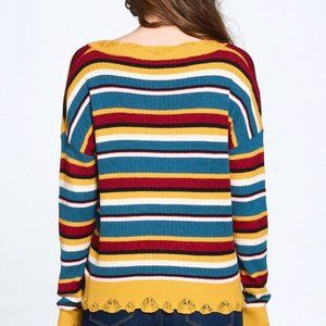 Women's Multi-Colored Variegated Striped Ruffled Edge Hem Knit Sweater NWT