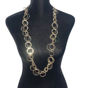 Womens Multi-Ring Adjustable Long Fashion Statement Necklace Gold-tone 16"