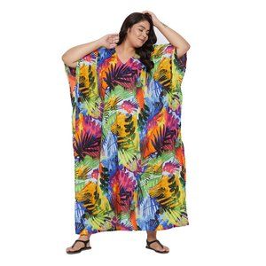 Womens Multicolor Beautiful Floral Kaftan Beach Cover Up Traditional Maxi Dress