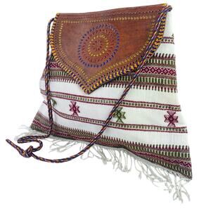 Women's Multicolor Brown Aztec Boho Fringe Ethnic Quilted Crossbody Handbag OS
