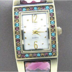 Women's Multicolor Crystals Tank Styel Bangle Analog 20mm Dial Watch (D7)
