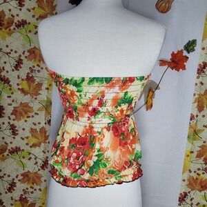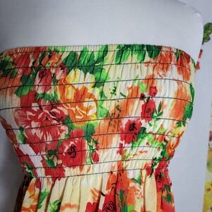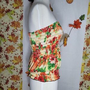 Women's Multicolor Floral Printed Sleeveless Smocked Blouson Tube Top Size M