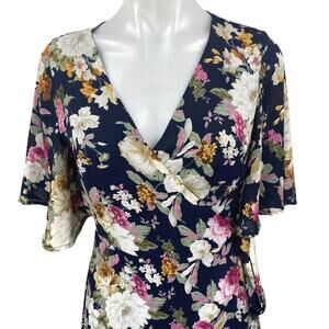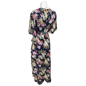 Women's Multicolor Floral Short Flutter Sleeve V Neck Maxi Wrap Dress One Size
