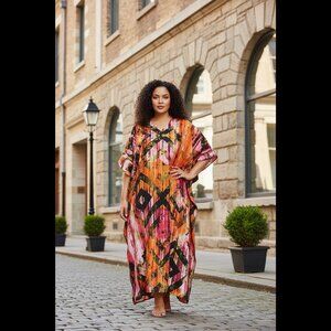 Womens Multicolor Geometric Maxi Dress Caftan Cover Up Evening Gown for Party