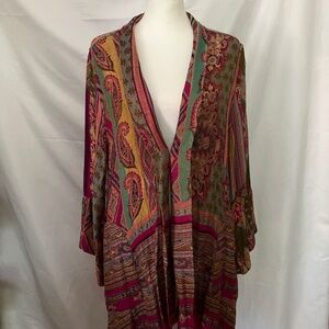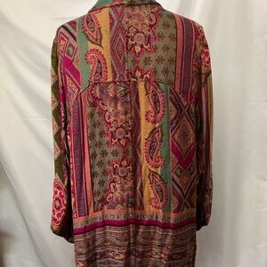Women’s Multicolor Ornate Print Fringe Trim Top