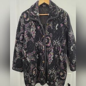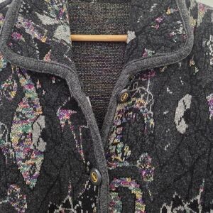 Stylish women's jacket featuring a vibrant multicolor pattern. Perfect for adding a pop of color to your wardrobe. This is a nice thicker material with great structure. No brand/size or material tags. Pit to pit measures approximately 22" and fits like a large.